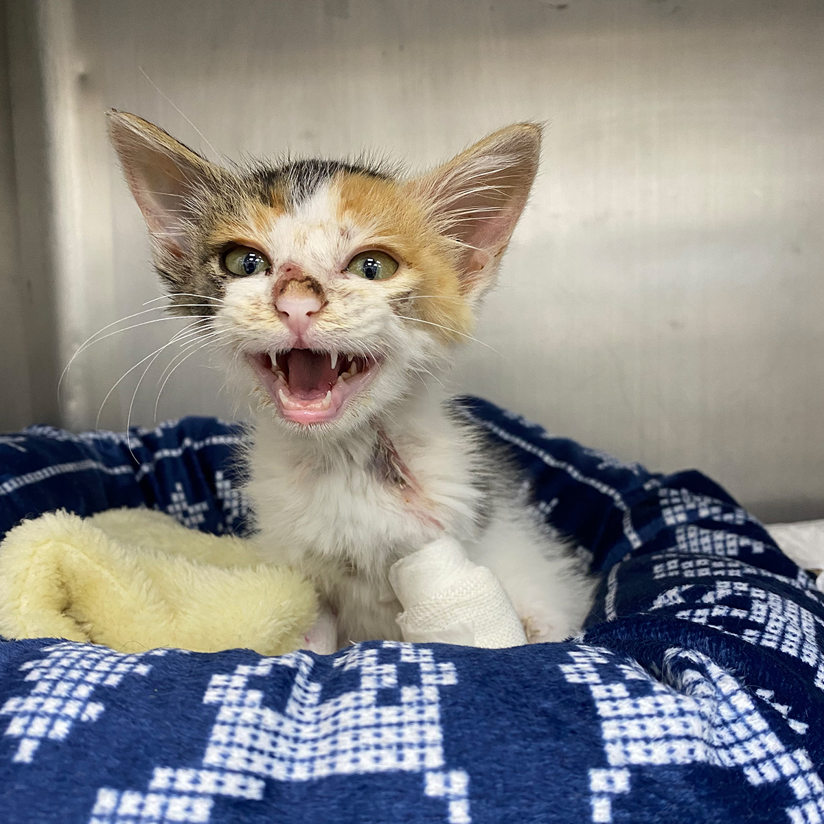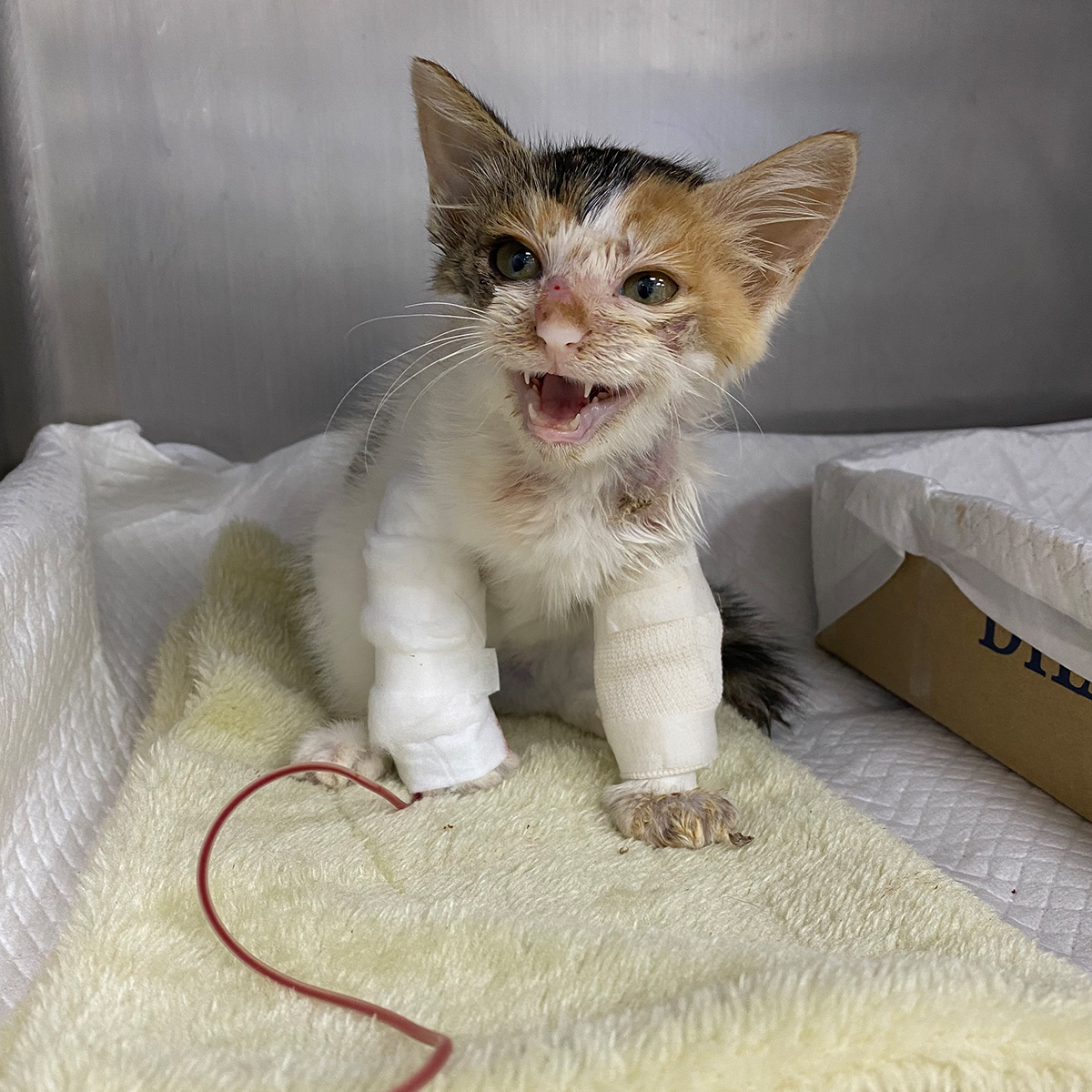 끈끈이 쥐덫에 온몸이 붙어있는 길고양이를 보호자님이 구조 후 저희 동물병원으로 내원하게 된 상황입니다.