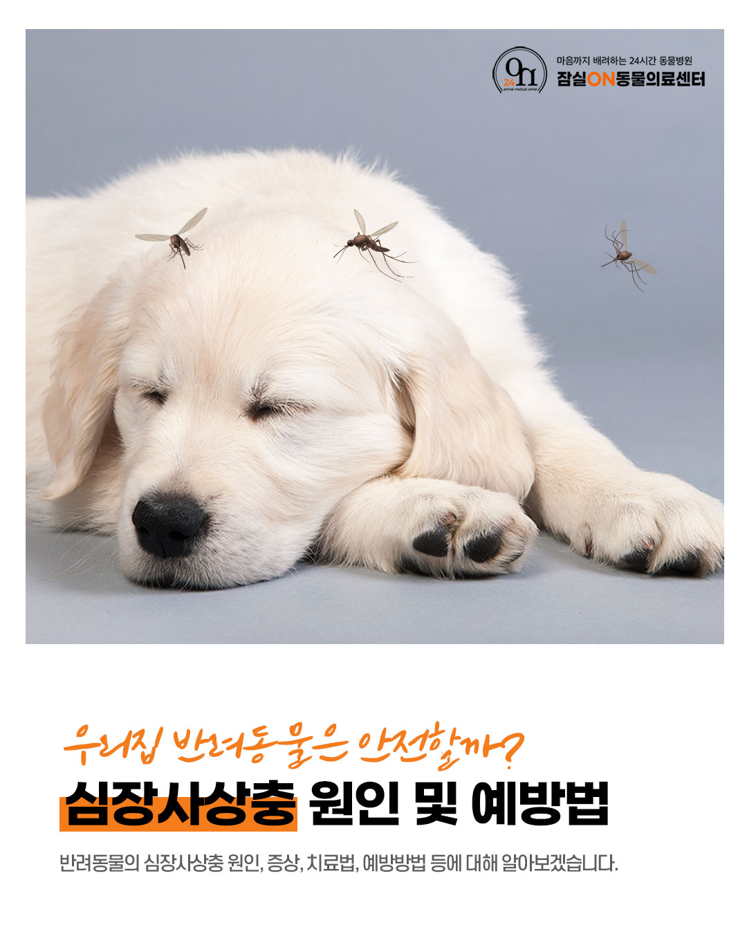 365일 24시간 함께하는 동물병원 잠실ON동물의료센터입니다. 오늘은 심장사상충의 원인 및 예방법에 대해 알아보겠습니다.
