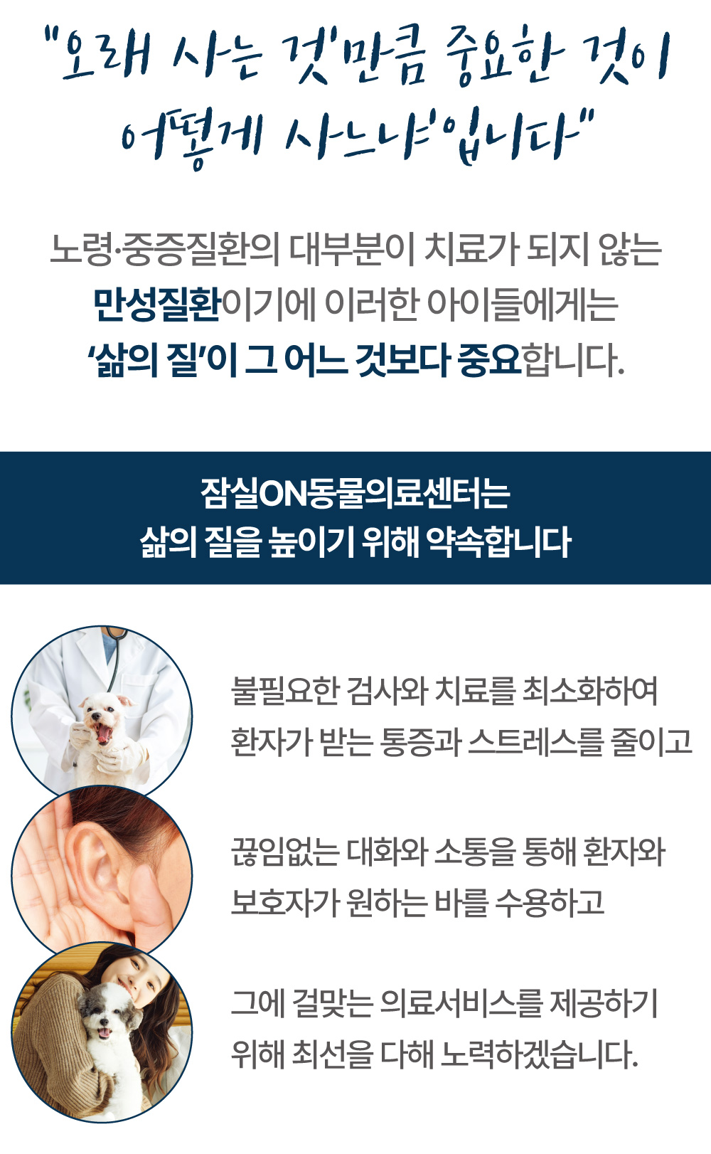 잠실ON의 내과센터는 반려동물과 보호자님의 마음을 이해하는 동물병원이 되겠습니다.
