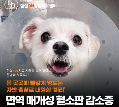 얼마 전 내원한 10살 강아지 인슐린종 케이스에 대한 이야기입니다.메리는 6개월 전부터 지속적인 떨림과 선회운동, 기력소실. 심지어 발작증상을 보여 지역병원에서 치료를 받고 있었는데요, 개선이 되지 않고 있었습니다.스테로이드 처방 후에 발작 증상을 비롯한 대부분 증상이 개선되지만, 보호자님은 정확한 병명을 알지 못해 답답하신 마음에 잠실ON동물의료센터에 찾아오셨습니다.<내원당시 힘이 없어보이는 메리>메리는 처음 잠실ON동물의료센터에 내원한 당시에는 많이 힘이 없어보이는 모습이었어요 ;;;메리의 이전 병력과 타 병원기록들을 바탕으로 인슐린종이 의심 되었는데요, 정확한 진단을 위해 저희 잠실ON동물의료센터에서는 정밀검사를 실시하기로 하였습니다.<혈액검사 상 확인된 매우 낮은 수준의 혈당>대부분의 검사에서 큰 이상이 확인되지 않았지만, 심각한 수준의 저혈당이 확인되었습니다. 보통의 강아지들은 이정도 저혈당이면 일어서지도 못할 수준이었는데요, 발작하거나 쓰러져 있어야 정상이지만 메리는 겉으로 보기엔 약간 기운 없어 보이는 정도로 큰 이상이 보이지 않았습니다. <그동안 있었던 지속적인 저혈당 증상을 추정 할 수 있는 혈중 프록토사민 수치> <과도하게 증가되어 있는 혈중 인슐린 농도>잠실ON동물의료센터의 내과 의료진은 혈당과 관련한 검사를 진행하였습니다. 검사결과, 메리는 지속적인 저혈당을 보였으며 혈중의 인슐린 농도가 극도로 높았음이 확인되었습니다. <메리의 초음파 사진> <메리의 CT사진>또, 초음파와 CT검사를 통해 간과 비장, 췌장에 림프절이 커져있음을 확인하였습니다.이는 주변 조직 전이를 의미하는 소견으로, 보호자님과 상의하에 추가적인 조직검사까지 진행하지는 않았습니다. 잠실ON동물의료센터에서는 이러한 여러 소견을 바탕으로 인슐린종(Insulinoma)로 잠정 진단하였으며 이에 대한 치료, 관리를 하기로 결정했습니다. 메리의 케이스는 여러 장기로의 전이가 의심되는 상황이었어요..때문에 수술적 교정이 아닌 내과적 처치로 유지하기로 했고, 현재의 수의학에서 유일한 방법인 스테로이드 처방을 통해 저혈당을 조절하기로 하였습니다.아이벡스프로글리셈현탁액 [출처: 의약품사전]여러가지 약물이 인슐린종에서 추가로 사용 가능한 것으로 알려져 있고 이를 사용하기 위해 잠실ON동물의료센터의 스텝들이 여러 루트로 확인해보았지만, 국내에서는 비스테로이드 약물을 사용하려면 보호자님에게 큰 경제적 부담이 갈 것으로 예상되었습니다..보호자님과 상의하에 잠실ON동물의료센터 에서는 스테로이드 처방만을 실시하기로 하였습니다.메리의 케이스는 주변 조직으로 전이가 되어 예후가 불량할 것으로 판단이 되지만, 잠실ON동물의료센터에서는 환자의 삶의 질 유지를 위해 적절한 처치를 이어가기로 결정 하였습니다. <입원치료 3일차 메리의 모습. 내원 당시보다 기력을 많이 찾은 듯한 모습이었어요.>메리는 현재 식이조절과 약물치료를 통해 잘 관리되고 있습니다. 입원 3일차에는 그동안의 처치로 메리는 기력을 되찾는 모습도 보여줬어요:)메리야, 더 건강해질 수 있게 우리가 앞으로 도와줄게.힘내자 메리!! :)
